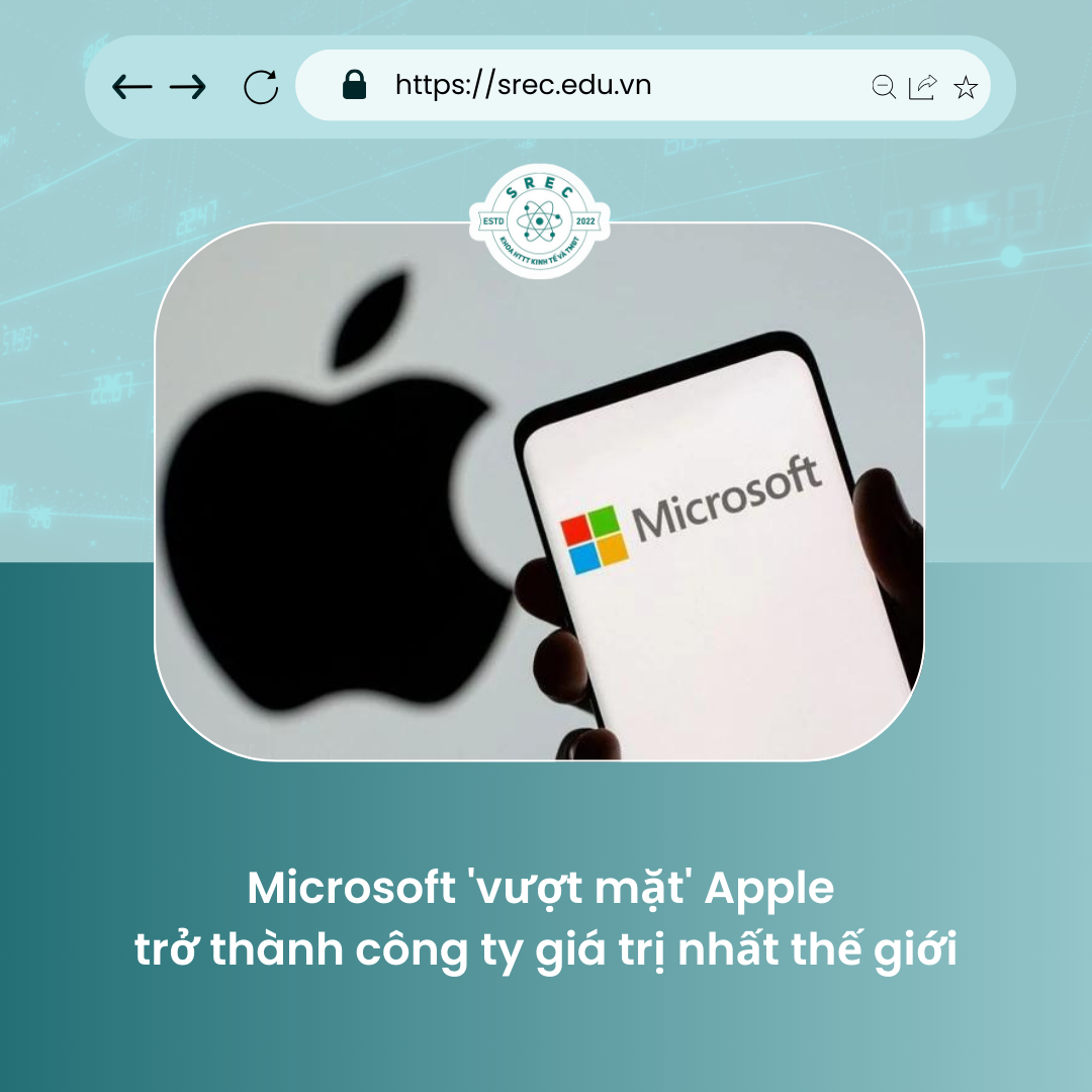 Theo thông tin cập nhật ngày 12/1 của Reuters, Microsoft lần đầu tiên kể từ năm 2021 vượt qua Apple để trở thành công ty có giá trị nhất thế giới. Cổ phiếu của Microsoft đã tăng mạnh kể từ năm ngoái do hãng công nghệ này sớm dẫn đầu lĩnh vực trí tuệ nhân tạo tổng hợp thông qua khoản đầu tư vào công nghệ ChatGPT của OpenAI còn cổ phiếu của nhà sản xuất iPhone có khởi đầu năm 2024 yếu kém do suy giảm doanh số. Apple đang phải vật lộn với nhu cầu tiêu dùng suy yếu, bao gồm cả iPhone - sản phẩm "đẻ trứng vàng" của hãng. Doanh số của Apple ở thị trường lớn như Trung Quốc đã sụt giảm khi nền kinh tế nước này phục hồi chậm sau đại dịch, cùng sự cạnh tranh mạnh mẽ của hãng công nghệ nội địa Huawei trỗi dậy.